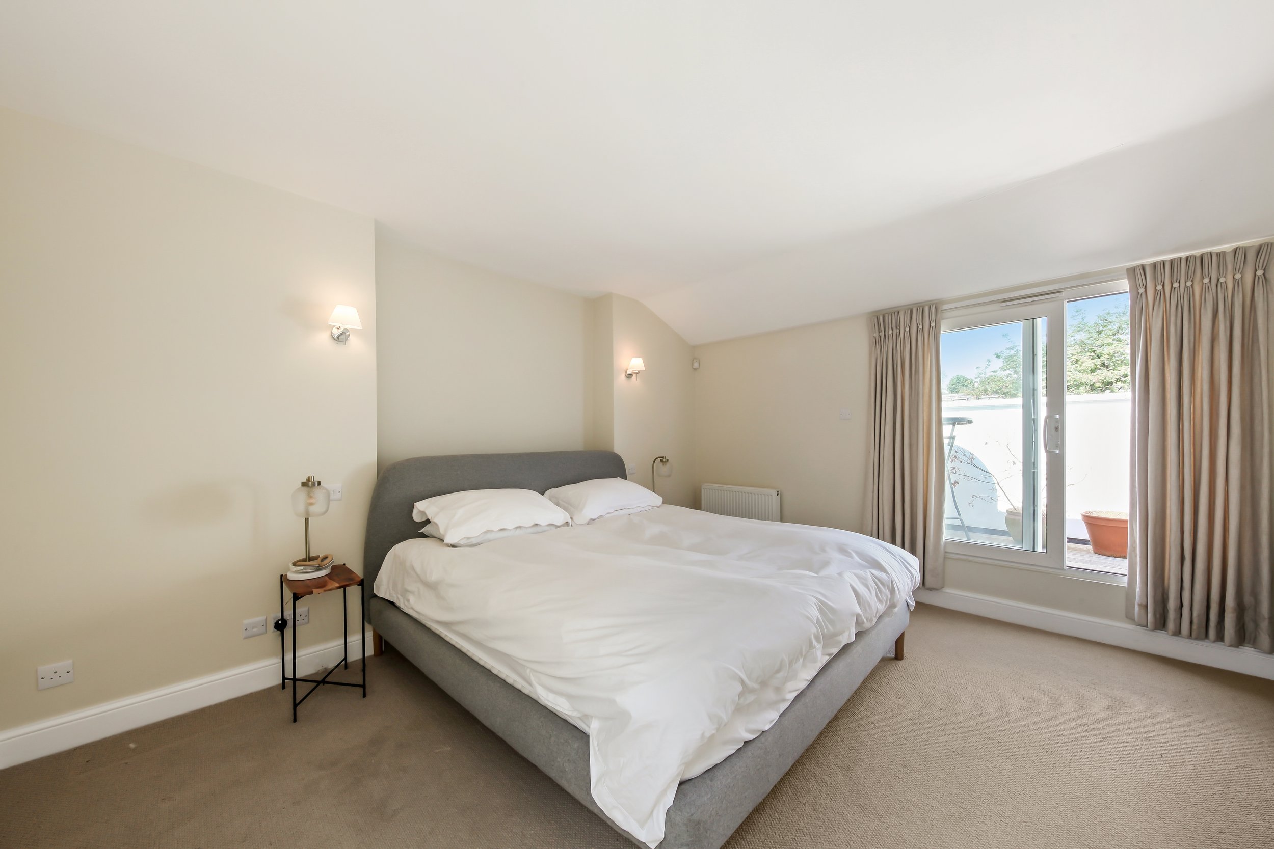 Whilst the top floor hosts a third spacious bedroom with adjoining en-suite shower room, built in storage & west facing balcony.